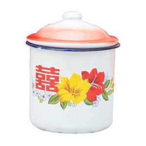 懐かしい昔ながらの花柄レッドダブルハピネスエナメルカップ結婚式のお土産ウェディングキャンディーエナメルカップ蓋付き大容量マグカップ