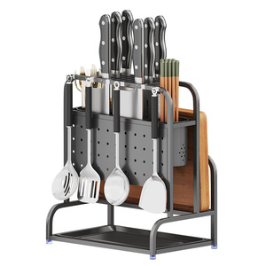 【代発リンク】現代のシンプルなステンレスキッチンの棚の刃物棚の箸立ての棚のまな板の収納棚