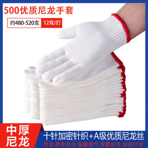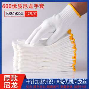 ナイロン手袋労働保護耐摩耗糸手袋肥厚滑り止め男性作業現場保護綿糸労働保護手袋