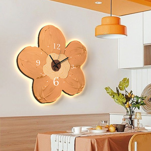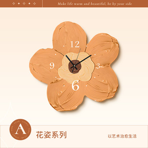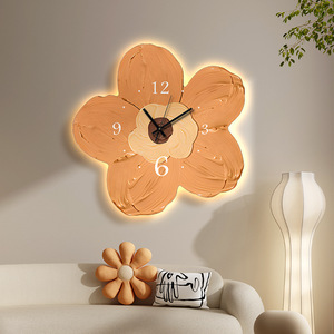 モダンでシンプルなクリーム系の壁掛け時計 暖色系の密度板彫刻花柄クォーツムーブメント付きホール壁掛け時計