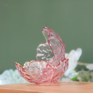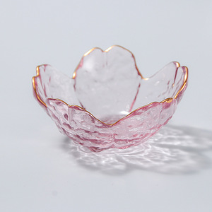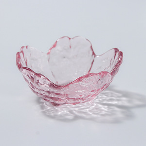 和風家庭用ピンク桜模様ガラス小皿、創作小皿、酢皿、鍋用調味料皿、つけ皿