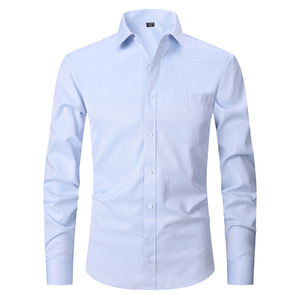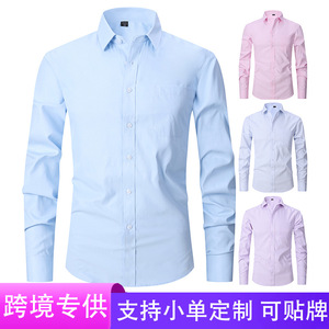 アマゾンwishクロスボーダーの新しい純色の大きいサイズの職業のシャツの男性の対外貿易の金の長袖のシャツの男性の秋