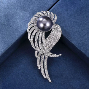 天使の翼の羽のブローチの高級な女性の真珠のコサージュのデザイン感の小さい大衆のスーツのピンの気質の新型の装飾品