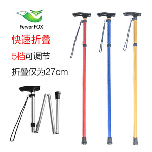 アルミ合金登山杖5節伸縮折り畳み登山杖滑り止め杖老人補強調節可能杖