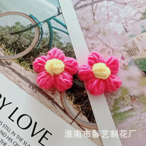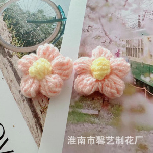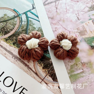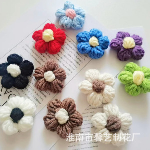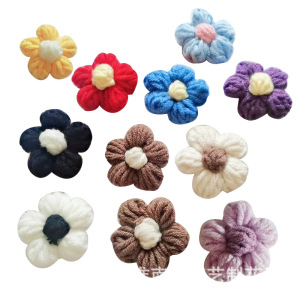 送料無料パフフラワー手編みウールフラワー diy ヘアピンブローチフラワー衣類バッグ靴靴下ジュエリーアクセサリー花