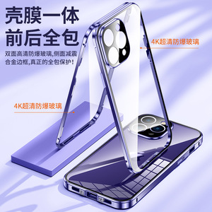 アップル14ダブルカードボタンガラス磁気吸引携帯ケースアップル13/15pro両面レンズ全包転倒防止ケース