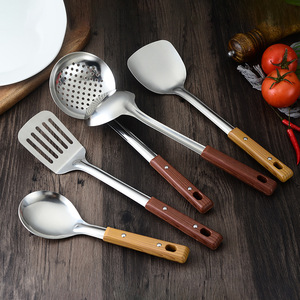 201ステンレス鍋シャベル調理器具5点セット家庭用キッチン調理鍋シャベルセット木柄鍋シャベル大漏れスプーン