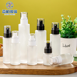 在庫あり卸売30ml透明フロストガラスローションボトル化粧品エッセンス分注ボトルプレススプレーボトル