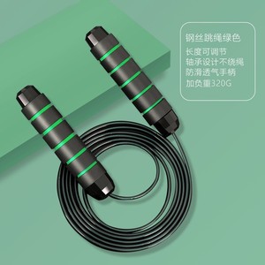 スチールワイヤー縄跳び - 黒と緑 + 160g 耐荷重ブロック 160g