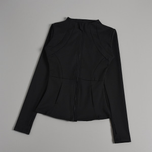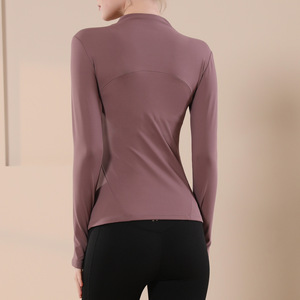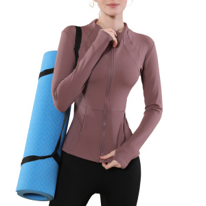 ヨガ服の女性のスポーツ上着のスタンドカラーのファスナーの長袖はスリムに見えます。