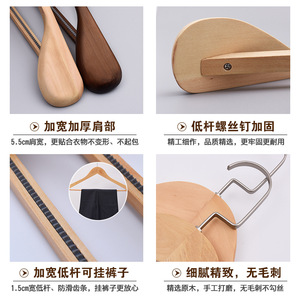 無垢材ハンガー、跡が残らない幅広肩、ホテル仕様スーツハンガー、棒付き、新中式ハンガー、卸売、滑り止め付き
