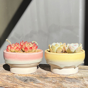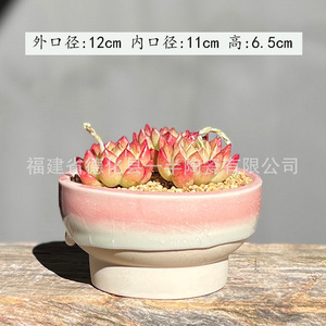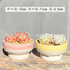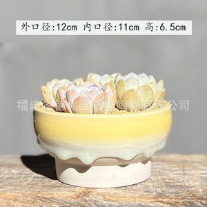 大口径多肉植木鉢流釉薬氷裂鍋円盤陶磁器手作り花器清新単頭シンプルキャンディー色