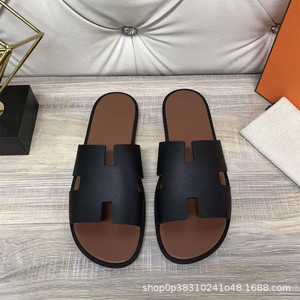 夏の本革のフラットhスリッパのファッションカジュアルなフラットサンダル