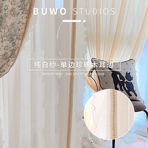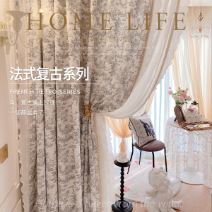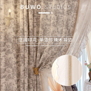 フランスのプリントカーテンのカーテンのカーテンの綿麻のリビングルームのレストランのベランダのロマンチックなレトロなプリントの真珠のレースの完成品の卸売り