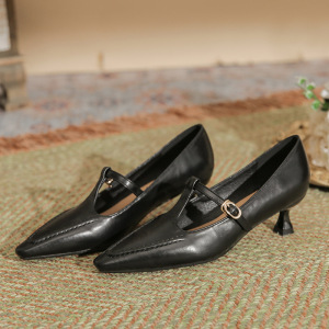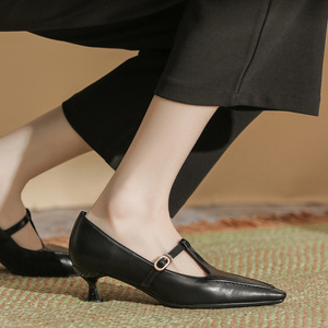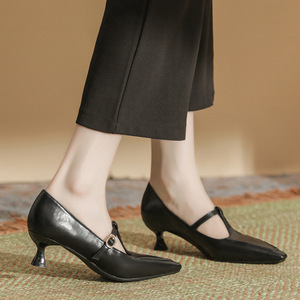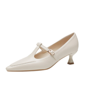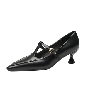 羊皮の中敷きのH685-6の純色のハイヒールのメアリー珍の靴の女性の細い靴と柔らかい皮の先の日常の女性の靴の春夏の新しいです。