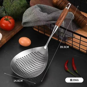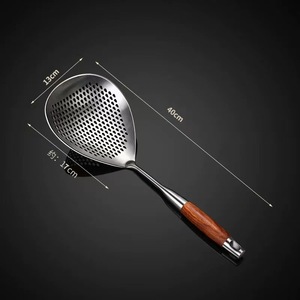 304ステンレスのサンショウの大きいスプーンは厚い木の柄のスプーンをすくいます。