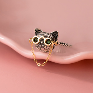 納蘭s 925純銀泰銀チェーンメガネ猫の指輪の復古風は古い個性の手飾りをします。
