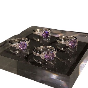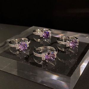 MoodCat.スイートクールパープルダイヤモンドスーパーフラッシュダイヤモンドホットガールオープン調節可能なカップルリング女性用