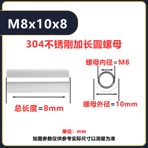 304ステンレス円ナット円柱ナットm3m 6延長円ナット管溶接リンクねじナット