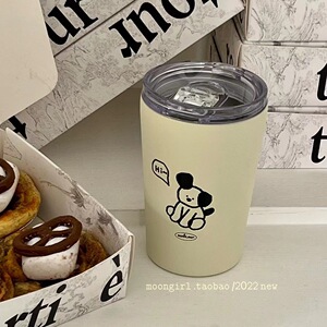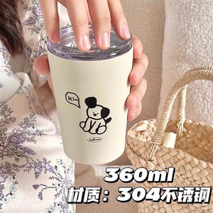 保温カップ女子学生高颜値ストローカップ付きコーヒーカップオフィスステンレス学生ダブルカップ