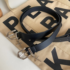 春の韓国版の新型本革ベルトのジーパンのファッションはカジュアルな香港風のinsの潮のベルトの装飾に合わせます。