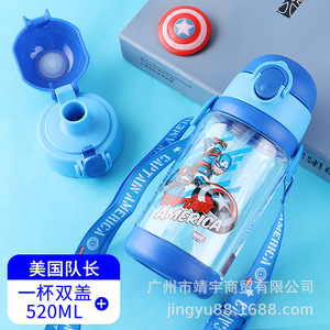 ディズニー児童プラスチックカップ漫威ストロー直飲両用水筒ストラップ携帯学生夏赤ちゃんカップ
