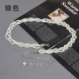 韓国の真珠のチェーンはベルトの女性の細いワンピースの金属の腰のチェーンを飾ります。