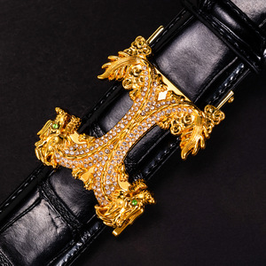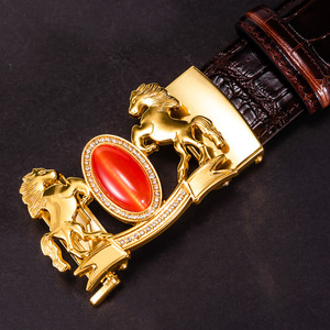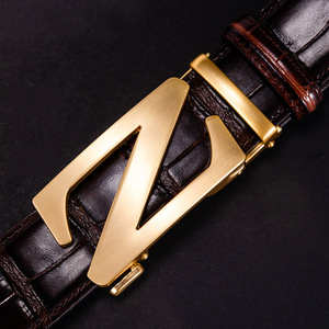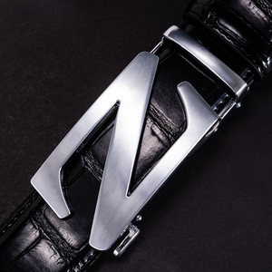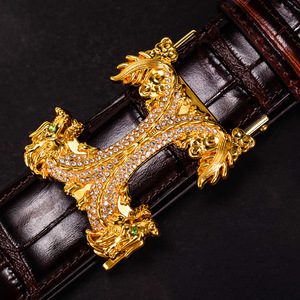 高級男性の本革は自動的にワニの紋様のベルトを掛けます。