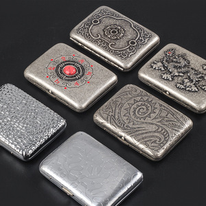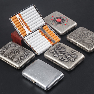 レトロな銅製タバコケース、16本収納、金属製メンズ携帯タバコケース、耐圧タバコホルダー、個性的な彫刻入り