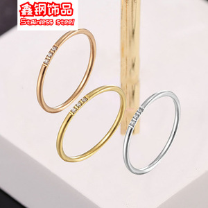 日韓のファッションは簡単で新型の金色の極細の1粒のドリルの円のコイルのチタンの指輪の女性の冷たい風の人差し指の尾戒です。