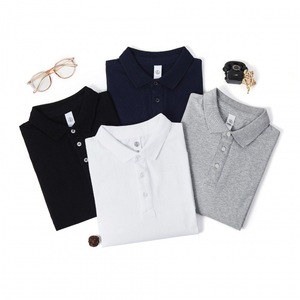 ビジネス男性poloシャツ日系重ポンド純綿襟tシャツポールシャツゆるい純色女性作業服250g