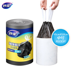 Miaojie 巾着ゴミ袋家庭用ポータブルポイントブレイク自動閉鎖肥厚黒ビニール袋卸売