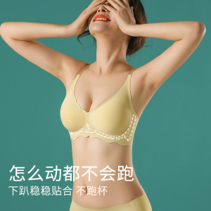 ゼリー条の裸感の無痕下着の女性は小胸を集めて運動します。