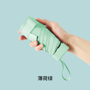 現物平六折傘黒ゴム晴雨両用傘精緻小型携帯女性傘紫外線防止カプセル傘