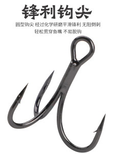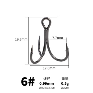ブラックキングコング6066三重強化ブラックニッケル三本針ルアー耐腐食ミノーフィッシングフック淡水海釣り用