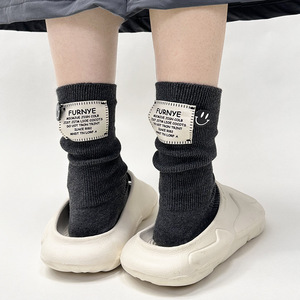 靴下の女性の春の夏の布の標準の笑顔のふくらはぎの靴下の女性の厚い積み重ねの靴下の黒色のソックスの白い中筒のコーヒー色