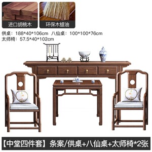 【中堂四点セット】1.88メートル条案/供卓 + 151 # 八仙卓 + 124 # 太師椅子 * 2枚