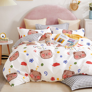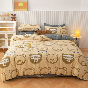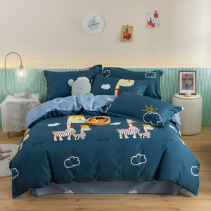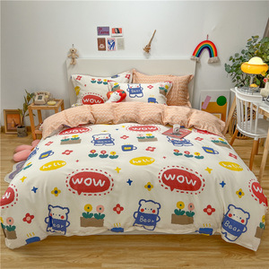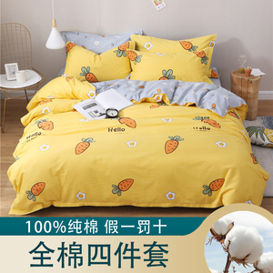 Ins純綿ベッド4点セット100純綿小清新布団カバーベッド笠寮アニメシーツ3点セットベッド用品