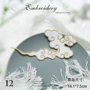 黄金色の模様の刺繍は舞台の時代劇の民族cosの刺繍を貼って祥雲の布を貼ってdiyの補助材料を貼ります。