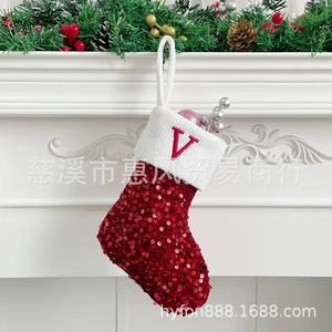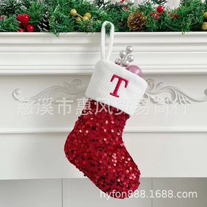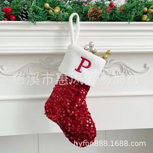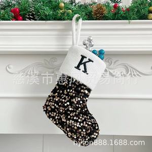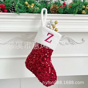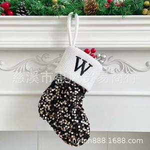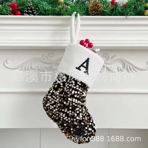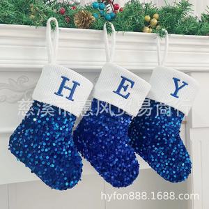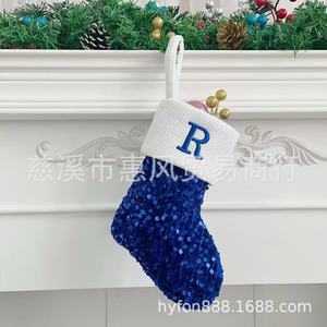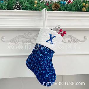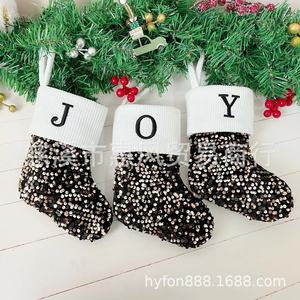 国境を越えた新製品クリスマス靴下赤青黒満スパンコール文字靴下9インチ軽贅沢暖炉装飾ストラップ