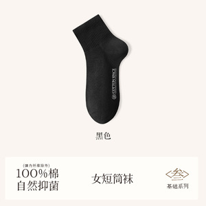 Zhuji 靴下産業純綿靴下女性の春と夏の薄いミディアムショートチューブ抗菌防臭綿ボートソックス黒と白の靴下