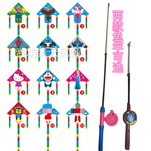釣り竿の凧の卸売りの子供は釣り竿の凧のプラスチックの小さい凧の釣り竿の凧の露店を持って新型を卸売りします。