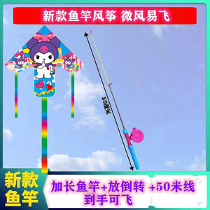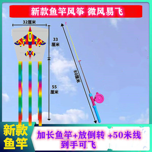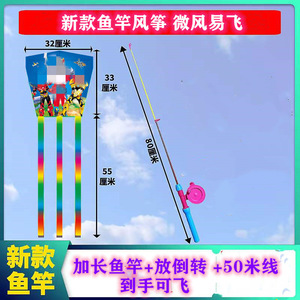 スクエア凧カラー双節伸縮釣竿50メートル線【図案混髪】