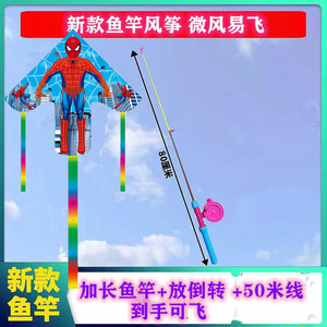 スパイダーマン + カラー双節伸縮釣竿 + 50メートル線