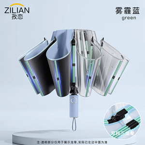 【フラッグシップリバース】60本骨オートマチック【逆非濡れ/10×6二段三本骨】晴雨~ヘイズブルー