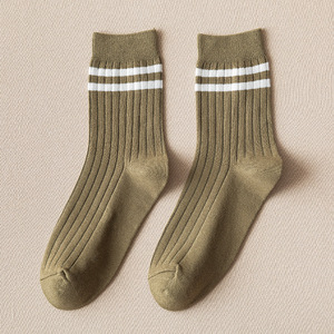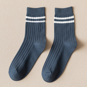 ダブル針メンズ横バーミドルソックス