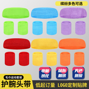 無地のアマゾンタオルリストバンド、ヘッドスカーフ、3点セット、スポーツヘアバンド、吸汗性保護具、カラフルなテリーリングリストバンド