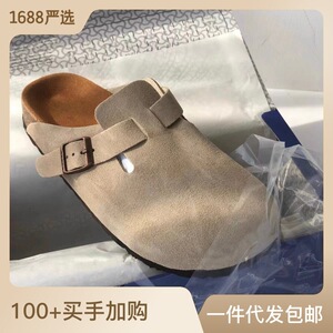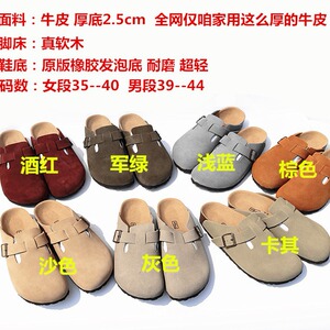 純正高級ビルケンシュトック風本革ヌバックレザー、コルク厚底、スリッポン、レトロビルケンシュトック風レディースハーフスリッパ、つま先が覆われたスリッパ