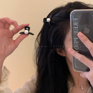 3 # 黒の交差形-真珠の小さなクリップ (ペアになるには2つ撮ってください)