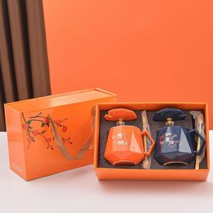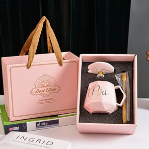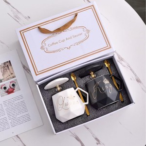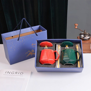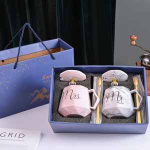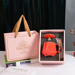 ヨーロッパ風セラミックマグカップ蓋付きスプーンコーヒープレゼントカップルカップジュエリーオープンウェディングお土産カップ